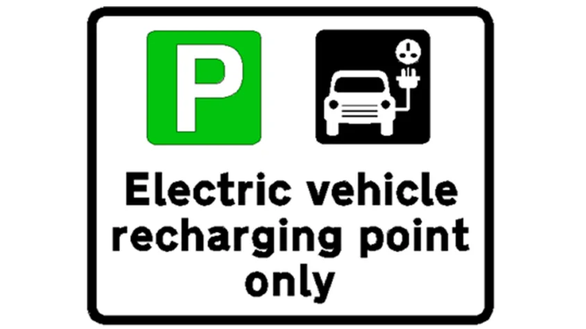 Example of signage at a charging point, to indicate parking place reserved for the charging of electric vehicles