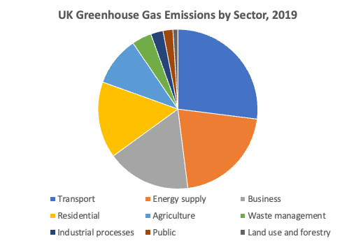 Transport is now the most polluting sector in the United Kingdom. In 2019 it produced the equivalent of 122 million metric tons of carbon dioxide (MtCO2e). This represents 27 percent of the country’s total greenhouse gas emissions. Emissions from cars and vans alone account for nearly a fifth of the UK’s total emissions.